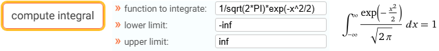 | a∫b g = | 1 | if a=-inf b=inf, | m=0 s=1 |