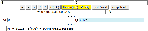 0*0.4487953186035156, 1*0.38468170166015625, 2*0.13738632202148438, 3*0.0261688232421875, 4*0.002803802490234375, 5*0.00016021728515625, 6*0.000003814697265625