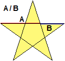 1. Mentre gli antichi Babilonesi già nel 1800 a.C. non avevano alcuna preoccupazione a rappresentare numeri con più cifre, comunque queste si susseguissero, i Greci, molti secoli dopo, non possedevano la scrittura posizionale dei numeri ed erano convinti che ogni grandezza potesse essere espressa come il rapporto tra due numeri interi, ossia come numero razionale. Non avevano, per esempio, idea che un numero che al quadrato facesse 2 doveva per forza essere irrazionale. Furono quindi scioccati quando un discepolo di Piatgora scoprì che nel pentagrammma (stella a 5 punte), il loro simbolo di riconoscimento, il rapporto tra le lunghezze dei segmenti A e B (vedi la figura a destra) non poteva essere espresso con un numero razionale (oggi sappiamo esprimere questo numero, che inzia con 1.61803398874 , con tutte le che vogliamo; tale numero viene chiamato sezione aurea). | ![]() |
