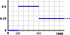 Il grafico del costo del noleggio per un giorno di un furgone in funzione della percorrenza. La ditta pratica una tariffa di 140 euro con un'aggiunta di 0.5 euro a chilometro per ogni chilometro di percorrenza eccedente i 200 km, che viene ridotta a 0.25 euro se si superano i 600 km di percorrenza [0.5 = 200/400, 0.25 = 100/400]