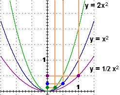 Quindi il grafico di x → x2 nel punto di ascissa x ha pendenza 2x. In questo modo posso calcolare facilmente la pendenza in qualunque punto del grafico, e tracciare la retta tangente passante per quel punto. Ad es. (vedi figura sopra a destra) per x = 1 la pendenza è 2, per x = 1/2 la pendenza è 1.