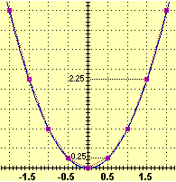 | Approssimo il grafico con un numero doppio di segmenti: quelli che congiungono i suoi punti di ascissa 2, 1.5, 1, 0.5, 0, 0.5, 1. 1.5 e 2. È facile calcolare la pendenza di questi segmenti. A destra è rappresentata graficamente la pendenza di questo nuovo grafico a tratti rettilinei con cui ho approssimato il grafico della funzione: la pendenza passa da 2.5 a 1.5, a 0.5,