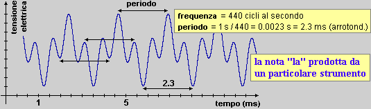 Sotto è raffigurata sotto forma di segnale elettrico una particolare nota, il LA.