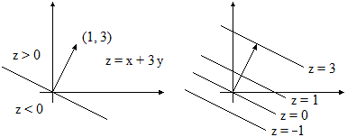 risulta sempre perpendicolare al piano z = mx + ny; essa indica il verso di crescita della funzione obiettivo z = mx + ny.