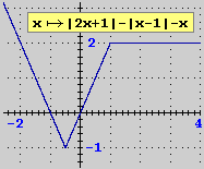 il grafico di x → |2x+1||x1|x, riprodotto a lato, interseca la retta orizzontale y=k: | ![]() | |
