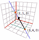 P = (3, 4, 0) + (−1, −3, 3)·t ovvero, indicando P con x = 3 − t y = 4 − 3t z = 3t. | |
