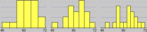 Le mode dipendono dalla distribuzione: gli stessi dati classificati in modalità diverse possono dar luogo a istogrammi con forme molto differenti. Sotto sono riprodotti gli istogrammi delle tre distribuzioni di uno stesso insieme di dati ottenute suddividendo lo stesso intervallo in 6, in 8 e in 12 sottointervalli uguali.