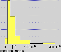 Per questo motivo la mediana spesso è un indicatore più significativo della media: se fra i dati con valore alto ve ne sono alcuni con valore altissimo (che danno luogo a una "coda" sulla destra dell'istogramma), questa presenza "strana", mentre non incide sul valore della mediana, può influenzare molto il valore della media. Lo stesso si può dire nel caso di alcuni dati dal valore "bassisimo" rispetto agli altri (che danno luogo a una "coda" sulla sinistra dell'istogramma).