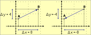 Il cambiamento di posizione che corrisponde al passaggio da un punto A a un punto B può essere descritto indicando la variazione orizzontale xB−xA, che indicheremo anche con Δx, e la variazione verticale yB−yA, che indicheremo anche Δy.