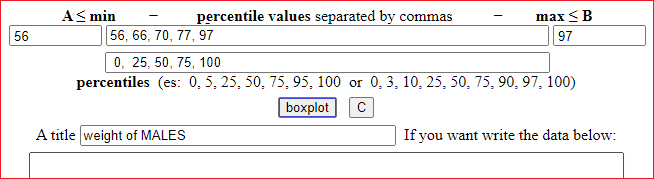Se so che, tra i maschi, il peso minimo è 56 kg, il massimo è 97, il mediano 70, il 25º e il 75º percentile sono 66 e 77, introduco: