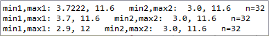 In the third box I obtain: min1,max1: 0, 423 min2,max2: 10.333333333, 230 n=108