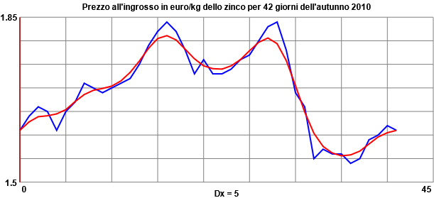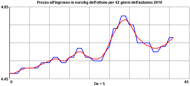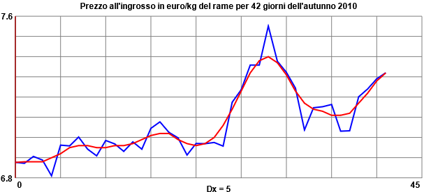 Third example. Wholesale price in €/kg over 42 days in autumn 2010 of the copper: