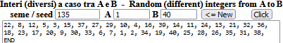 Lo script genera, apparentemente a caso, numeri interi diversi tra A e B.
