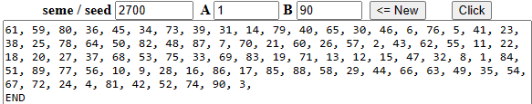 Se riclicchi [New] con lo stesso "seme" verrà generata la stessa sequenza.