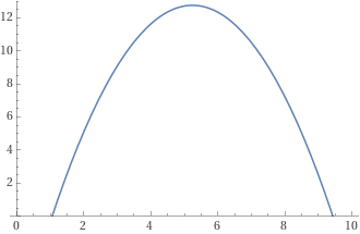 plot y = -0.726*x^2 + 7.61*x - 7.20, x=0..10, y=0..13
