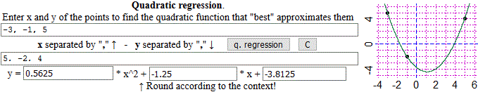 First example. If the points are 3 I get the parabola that passes exactly through them.