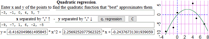 I get: y = -0.4162*x^2 + 2.257*x - 0.2438.