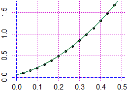 plot y = 4.837*x^2 + 1.213*x + 0.048, x=0..0.5, y=0..2