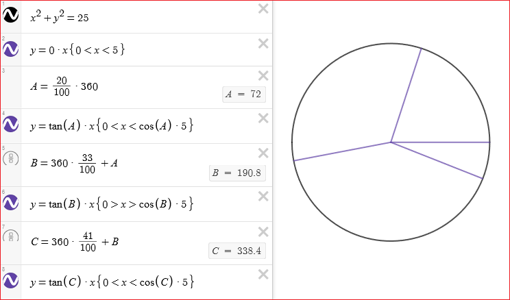 Volendo, si possono anche tracciare areogrammi a settori circolari. 20%, 33%, 41% (e 6%):