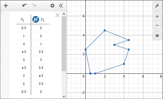 (0.5,0), (1,0), (4,1), (4.5,2.5), (3,3), (4.5,3.5), (2,4.5), (0,2.5), (0.5,0)