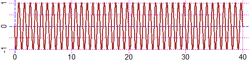 Il grafico di y = sin(-2·π·x) + sin(-2·π·x/√3) ↑