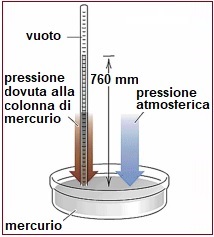 Evangelista Torricelli, nel 1643, con l'esperienza raffigurata a destra, stabilė che (al livello del mare) l'effetto della pressione atmosferica