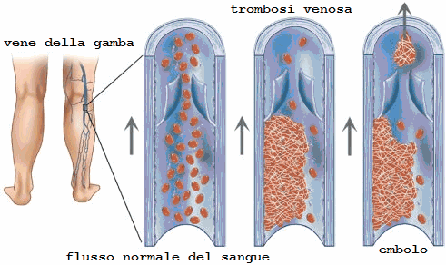 Trombosi di una vena delle gambe e sua degenerazione in embolia