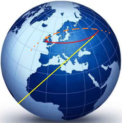 lungo il cerchio massimo che passa per i punti di partenza e di arrivo
