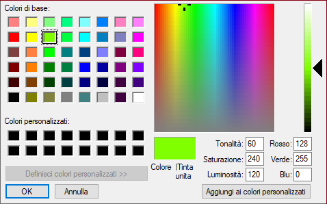 • I colori posso sceglierli con un click su una barra e poi selezionarli meglio con i codici