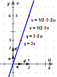 che nel vecchio sistema vale 2 (2 è P). Nella vecchia base F ha per grafico y=3x. Sia (u,v) il piano in cui rappresentare la funzione G che corrisponde alla nuova forma che assume F. Se rappresentassi nella nuova base solo l'input, il