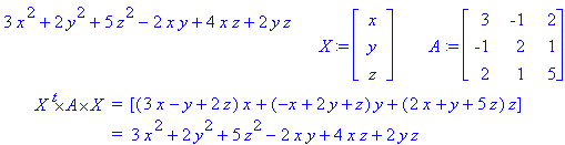 X×A×X t = [ x(2x+2y) + y(2x+5y) ] = [2x2 + 4 xy + 5y2]