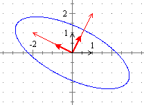 i due autovettori (ortogonali) Se assumo questi come base per un nuovo sistema di riferimento, allora (vedi): A assume la forma B = Λ dove Λ è la matrice diagonale che ha sulla diagonale i due autovalori 6 (corrispondente al nuovo primo versore) e 1 (corrispondente al secondo), che può essere espressa anche come B = Se indico con X' le nuove coordinate | ![]() |
