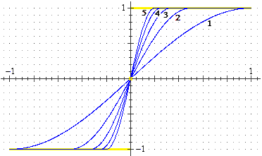 F(x) = 1 se x > 1, F(x) = −1 se x < −1, F(0) = 0