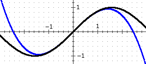 | Verifica: F(x) = sin(x) G(x) = x-x^3/6 F(0.1) = 0.09983341664682815 G(0.1) = 0.09983333333333334 F(-0.1) = -F(0.1) G(-0.1) = -G(0.1) F(0.1)-G(0.1) = 8.33135E-8 = G(-0.1)-F(-0.1) |