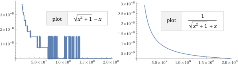 I problemi per T1 nascono dal fatto che per x con ordine di grandezza grande √(x2+1) e x tendono