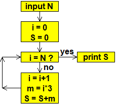 Il diagramma di flusso raffigurato a fianco rappresenta il calcolo per ottenere da un numero intero maggiore o eguale a 0 un altro numero. Quale? Motiva la tua risposta.