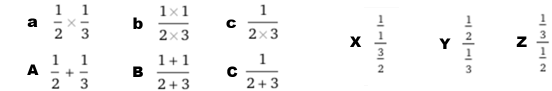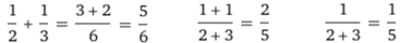 Con la calcolatrice 1/2 + 1/3 = 0.8333..., (1+1)/(2+3) = 2/5 = 0.4, 1/(2+3) = 1/5 = 0.2. Senza fare i calcoli numerici: