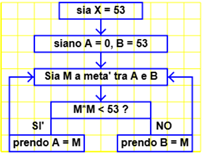 X = 53 A = 0 B = 53 (A+B)/2 = 26.5 A = 0 B = 26.5 (A+B)/2 = 13.25 A = 0 B = 13.25 (A+B)/2 = 6.625 A = 6.625 B = 13.25 (A+B)/2 = 9.9375 A = 6.625 B = 9.9375 (A+B)/2 = 8.28125 ... A = 7.280109889280517 B = 7.280109889280523 (A+B)/2 = 7.280109889280521 A = 7.280109889280517 B = 7.280109889280521 (A+B)/2 = 7.280109889280519 A = 7.280109889280517 B = 7.280109889280519 (A+B)/2 = 7.280109889280518 A = 7.280109889280517 B = 7.280109889280518 (A+B)/2 = 7.280109889280517 A = 7.280109889280517 B = 7.280109889280518 (A+B)/2 = 7.280109889280517 ...