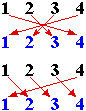| (1) Come si vede bene sulla figura, P1 manda 1 in 4, poi P2 manda 4 in 1; analogamente 2 viene mandato in 3 e 3 poi in 4. La funzione che descrive 1 → 1, 2 → 4, 3 → 3, 4 → 2. | |