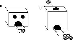 congegno B: introducendo una bilia nel foro esce un giocattolo.