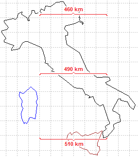 La prima osservazione è che le distanze tra i paralleli e i meridiani indicate sulla cartine sono arrotondate.
