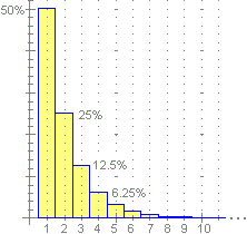 ). Analogamente in base 2 l'espressione 0.111 rappresenta il numero 1 (1/2 + 1/4 + 1/8 + 1/6 + = 1). A destra è raffigurato come questa idea si ritrovi molte volte, anche nelle situazioni più elementari: con quale probabilità, lanciando una moneta equa, testa mi viena al 1° lancio, e al 2°, e al 3°, |