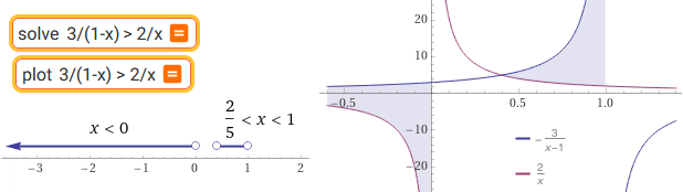 L'insieme delle soluzioni è quindi (−∞,0) ∪ (2/5,1).
