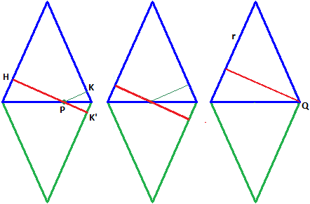 Abbiamo dunque che la lunghezza della spezzata HPK è sempre eguale a quella che ha nel caso raffigurato sopra a destro in giallo, cioè ad h. Come faccio a trovarne il valore?