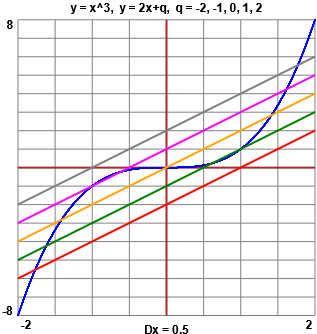 • Di fronte all'equazione x³-2x-q = 0 con incognita x e parametro q per capire come varia la quantità delle soluzioni al variare di q posso tracciare