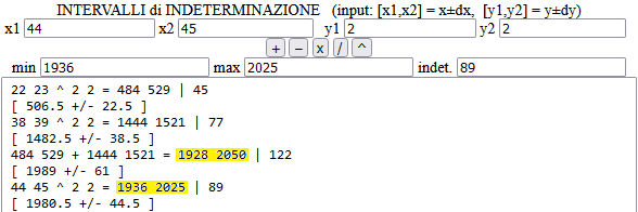 1936 at x = 44 2025 at x=45.