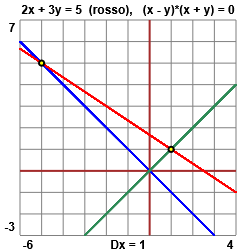 (x y = 0 V x + y = 0) & 2x + 3y = 5 che (vedi figura in fondo) equivale a: