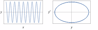 Tracciamo ora il grafico della relazione tra y e y': parametric plot (4*cos(sqrt(3)*t), -4*sqrt(3)*sin(sqrt(3)*t))