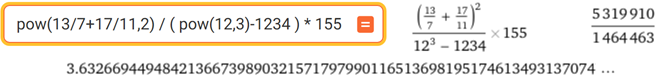 Invece di pow(13/7+17/11,2) / (pow(12,3)-1234) * 155 posso battere: