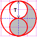 trasformo la figura in una nuova figura, di eguale area, che è un semicerchio di raggio T.